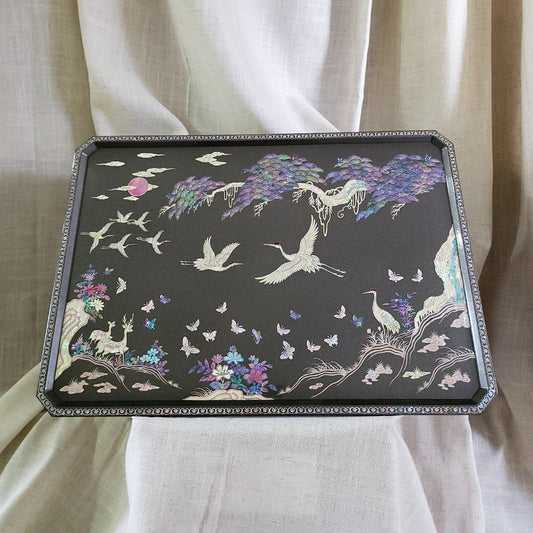Mother of Pearl Inlaid Wooden Fordable Coffee Table 460mm [Black]