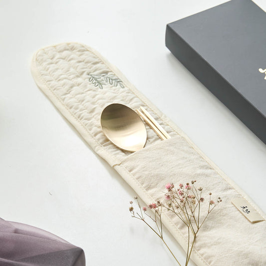 1-Person Embroidery Quality Fabric Cutlery Pouch